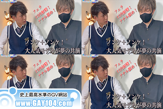 HealingBoyMovieの人気モデル2名が夢の共演!学生服に身を包みエッチな遊びにチャレンジしてくれました!2人とも幼い顔立ちなだけあり、学生服を着ても全く違和感がありません!軽くトークを楽しんだ後は、いよいよエッチな遊びへ!ノンケにも関わらず、パンツを脱ぐと意外にもチンコはビンビン!ノンケ2人のこのシチュエーション!とっても興奮します!ベットに場所を移し、フェラチオ&アナル攻め!2人とも満更ではない表情でとっても気持ちよさそう!ここで1人がフィニッシュ!口内射精で果ててくれました!続いてもう一人が男の手に導かれ真っ白な精子を放出してくれました!ノンケ2名が絡んでくれた奇跡の作品!ぜひ一緒に気持ちよくなってください!【この商品はHealing BoyMovieからの委託商品です】